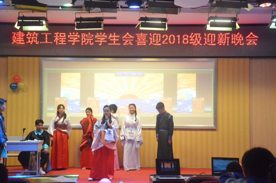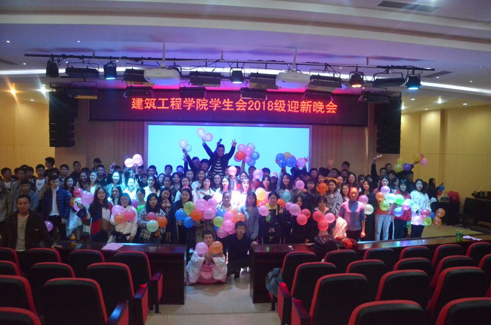 2018年10月25日19:00建筑工程学院学生会喜迎2018迎新晚会在图书馆报告厅隆重举行。出席本次晚会的嘉宾有团总支邓福啦老师、各专业辅导员老师、各学院学生会主席及学生会全体成员。