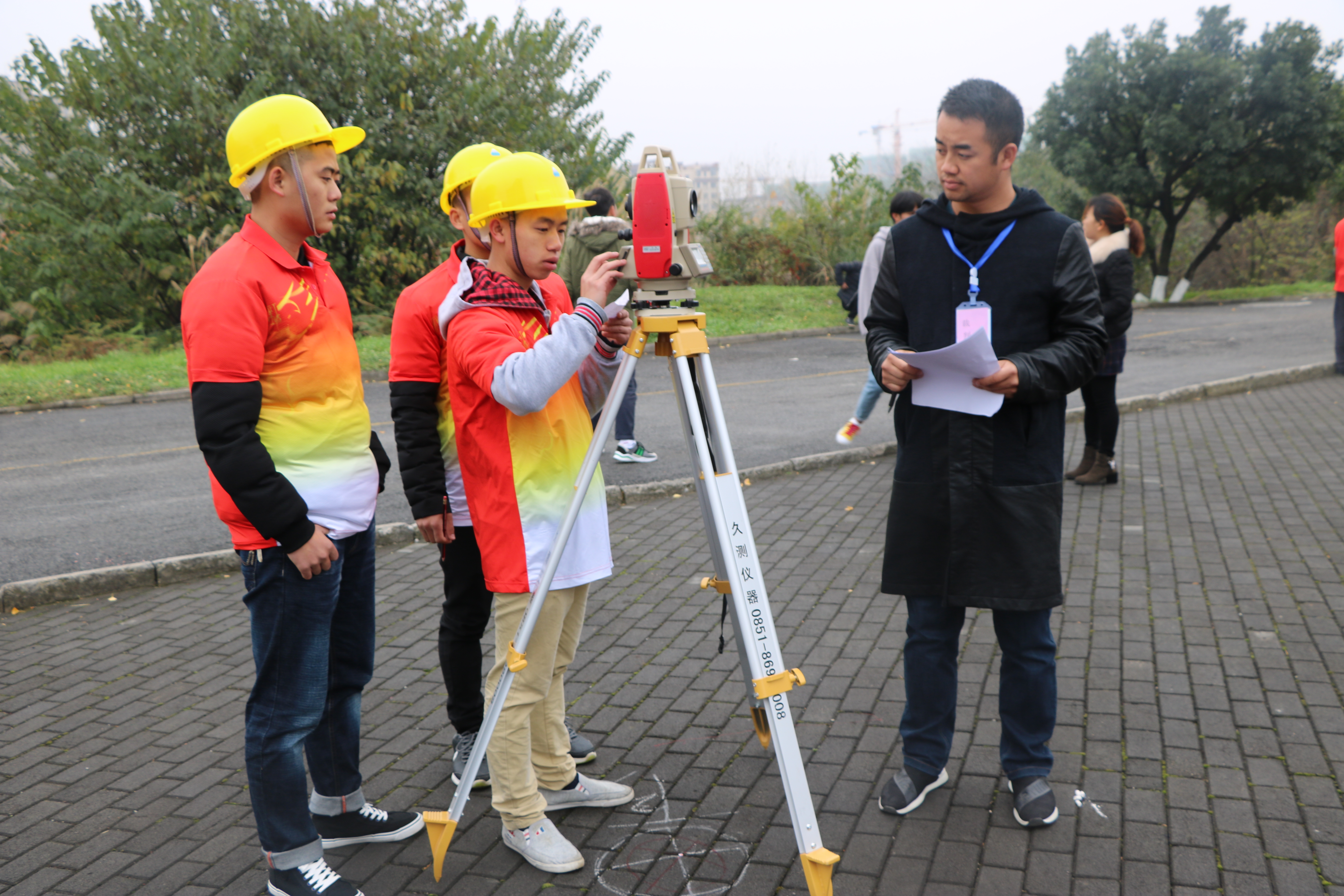本次大赛采取学生4人一组,以班级为单位报名,总共有8组32名学生报名参加比赛,本次比赛以学生组测出四个点的高差精准度、时间长短、操作规范来评分。