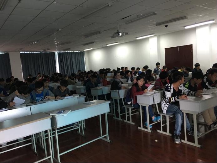 同学们正认真的听着辅导员的讲话。