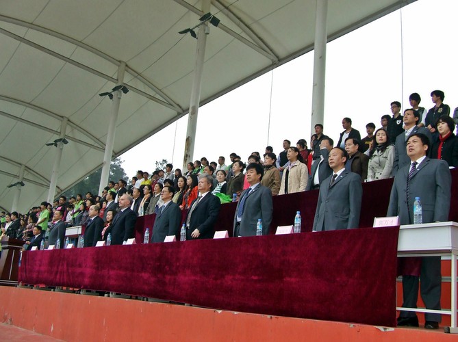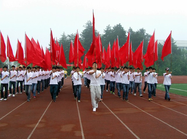 绿场地,红跑道,旗儿飘飘。 绿树环绕,微风徐徐,好一个赛场。 看,运动服英姿飒爽,青春昂扬; 听,欢呼声迅雷及耳,虎虎生气。 感受运动的激情,激起锣鼓阵阵! 这是我们的校运会。 这,是我们展示才华的舞台!