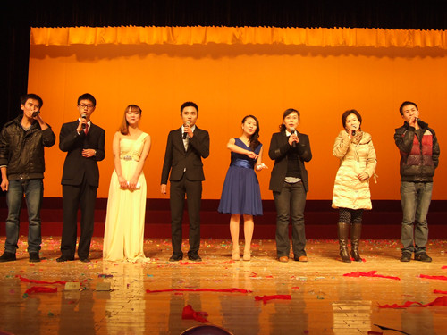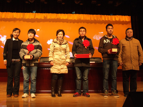 晚会开场,即对2012学年表现优秀的班级和个人进行了表彰,随后,周书记和韩主任分别进行了致辞,对获得表彰的同学寄予祝贺,并鼓励未获得表彰的同学再接再励,后发赶超,预祝大家新年快乐,希望同学们在新的一年里取得更大的进步!