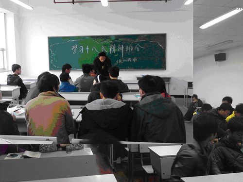 为了迎合学校开展学习党的十八大精神,工程系11级机械班在C栋教学楼506召开了关于学习党的十八大精神的主题班会。11级机械班的全体同学参加了此次会议。此次班会以“学习党的十八大精神”为主题,提高同学们学习的积极性,对十八决大蕴含的新意有一个深入的了解。