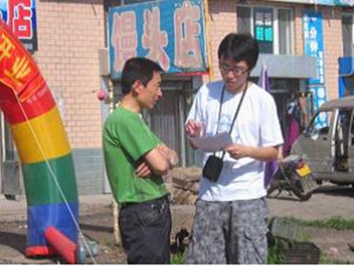 待同学们陆续到达铝厂之后,活动就拉开了帷幕。此次活动包括发传单和问卷调查。活动开始后,同学们向周边的人们分发传单并进行问卷调查,借此机会向居民讲叙污染的危害和防治措施。“瞧,这位同学正和老人亲切密谈,讲叙污染呢!”。活动中,负责摄影的同学用一个个珍贵的镜头保存着珍贵的瞬间。最后,所有同学在居委会门前合影,圆满结束了本次活动。