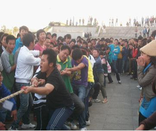 为了丰富师生的课余生活,促进学生之间建立深厚的友谊,陶冶学生的道德情操,增强师生的集体的凝聚力。贵州职业技术学院于2012年10月19日在校前广场举行了一次别开生面的拔河比赛。