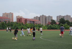 活动中,同学们先后进行了热身小游戏“眼疾手快”,分组合作游戏 “扔沙包”“踩气球”既回味了童年的快乐,也促进了彼此之间的交流,增进了感情,提高了团队协作能力,轻松欢快的气氛让在场的每一个人敞开心扉,欢声笑语充满着足球场,青春洋溢于彼此的脸庞。