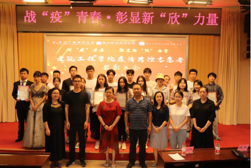 随后,党支部书记罗之军、胡群院长及建工学院辅导员老师为2020年疫情防控优秀志愿者颁发荣誉证书并合影留念。