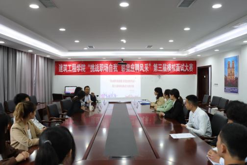 为提高我院学生的就业技能和实践能力,引导和促进学生专业技能训练,提高在校大学生的求职能力和职业规划意识,作好职业规划,我院于2021年5月26日上午9点举办了建筑工程学院“挑战职场自我 彰显应聘风采”第三届模拟面试大赛。出席本次大赛的评委有建筑工程学院党总支书记罗之军,建筑工程学院团总支书记董珈豪,辅导员老师张艺方、朱妍、陈春霞。