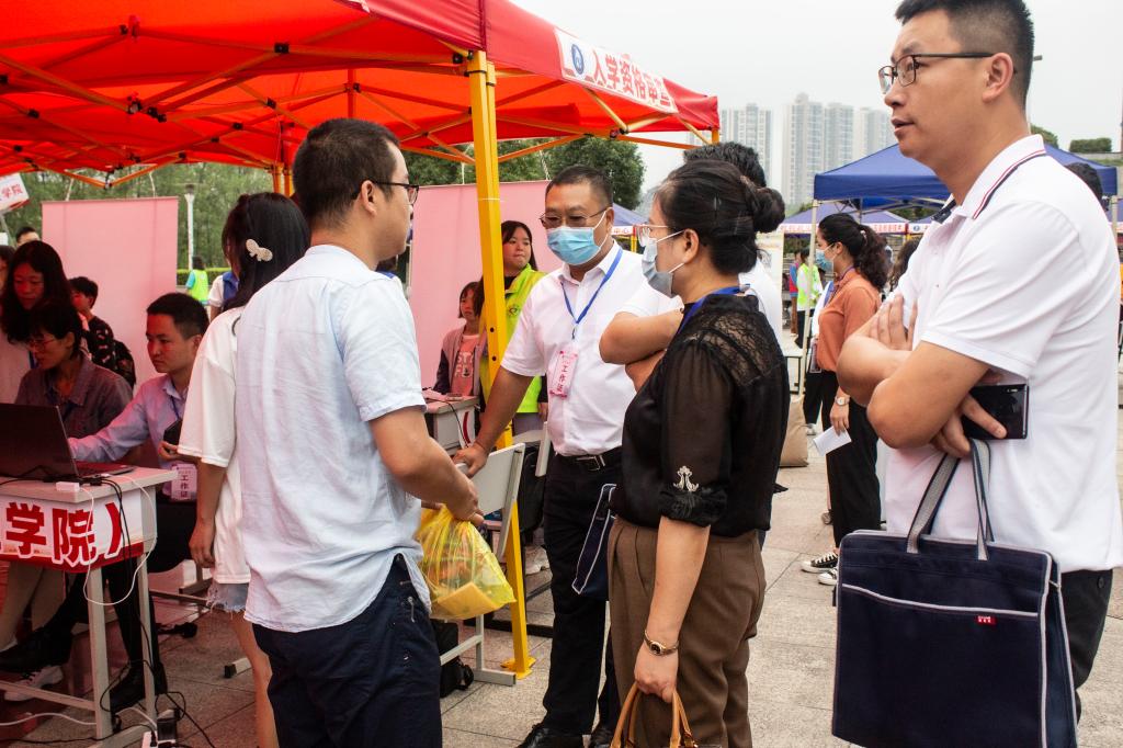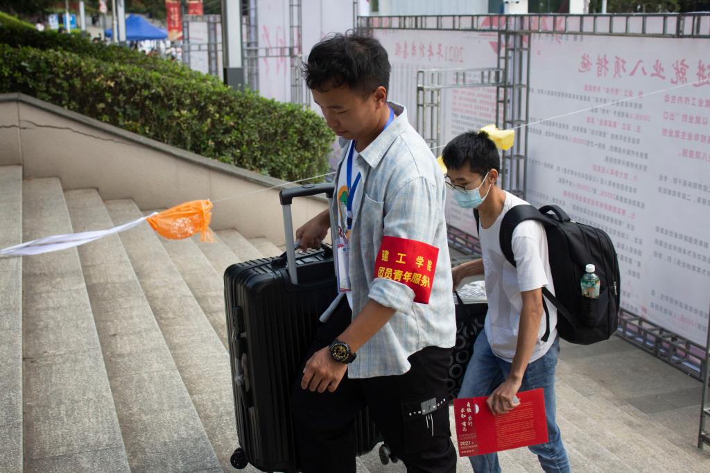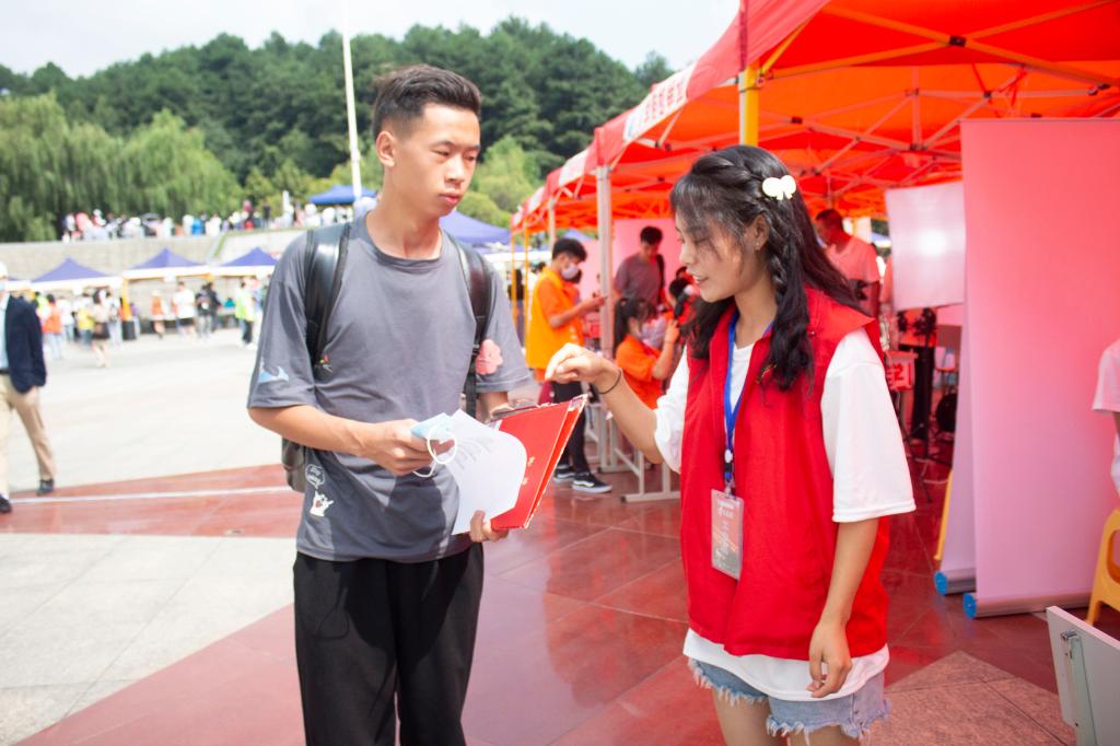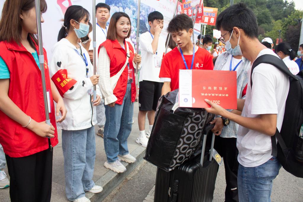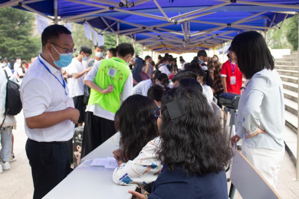 迎新志愿活动于2021年9月9日上午8:00在校前广场正式开展。为了避免新生单独入校带来的不便,志愿者们全程一对一为新生带路,帮助新生办理报到手续、为新生搬运行李、给新生讲解各个注意事项及学校的基本情况,为新生入校“保驾护航”。学生志愿者们充当着“代理家长”的角色,希望做到让新生放心、家长安心,让新生在初入校门时就能感受到温暖和归属感。