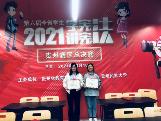 2021年10月18日,在由贵州省教育厅主办,贵州民族大学承办的2021年全省学生“学宪法 讲宪法”省级宪法法治知识竞赛中,我校2020级工程造价专业叶亚芳同学荣获全省比赛三等奖。