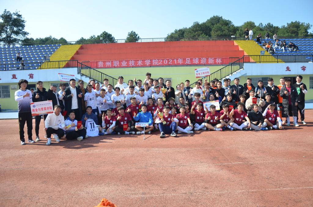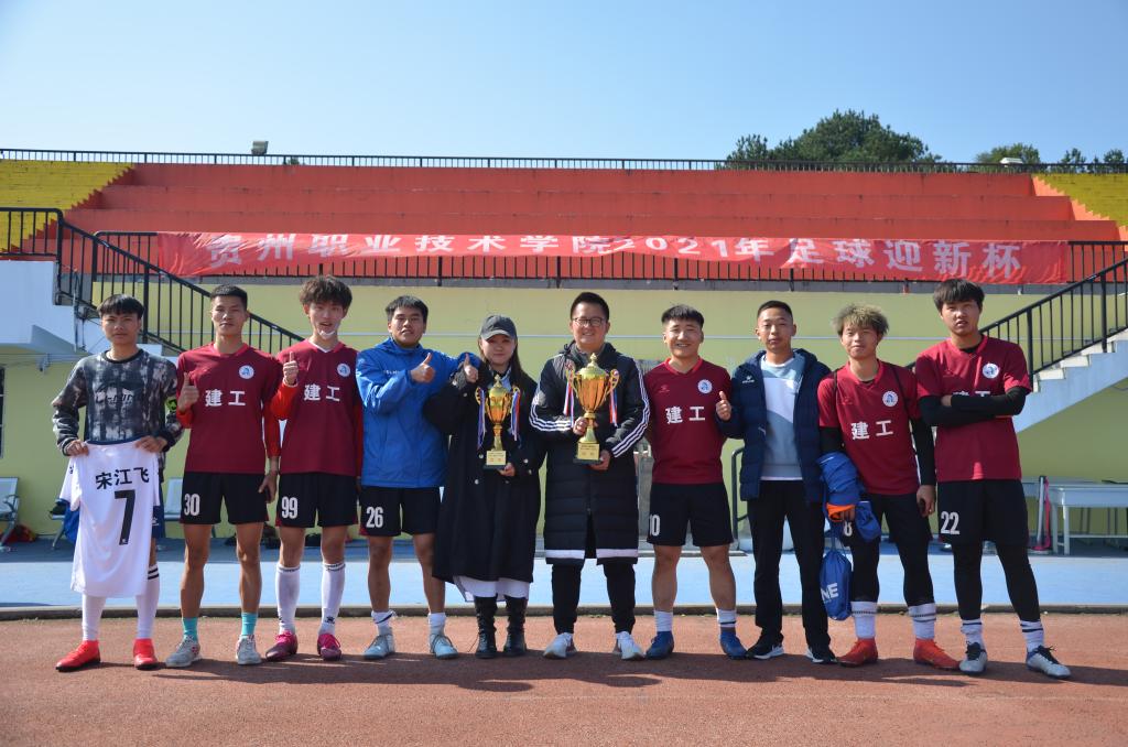 喜报!在2021年11月25日,贵州职业技术学院“迎新杯”足球赛决赛开战,建筑工程学院组建的两支足球队伍进行了一场学院内战,提前锁定了我校“迎新杯”足球比赛冠亚军,其中李飞、潘利怀、欧华获得了“优秀裁判员”,李家成、平洪奥获得了“优秀运动员”,吴森获得了“优秀守门员”的称号。