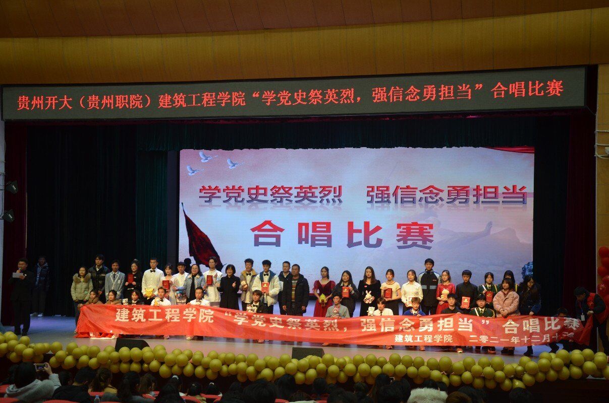 在新时代传唱红歌,不仅仅是一种追忆,一种传承,更是汲取一种力量。2021年12月13日晚,建筑工程学院举办了“学党史祭英烈,强信念勇担当 ”合唱比赛。以红歌追忆历史、缅怀先烈,用热血彰显忠诚、坚定初心,共同感受革命先烈们不怕艰难困苦、不怕流血牺牲的崇高精神和为人民谋幸福的伟大情怀,奋发有为的强国信念。