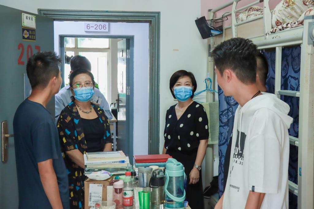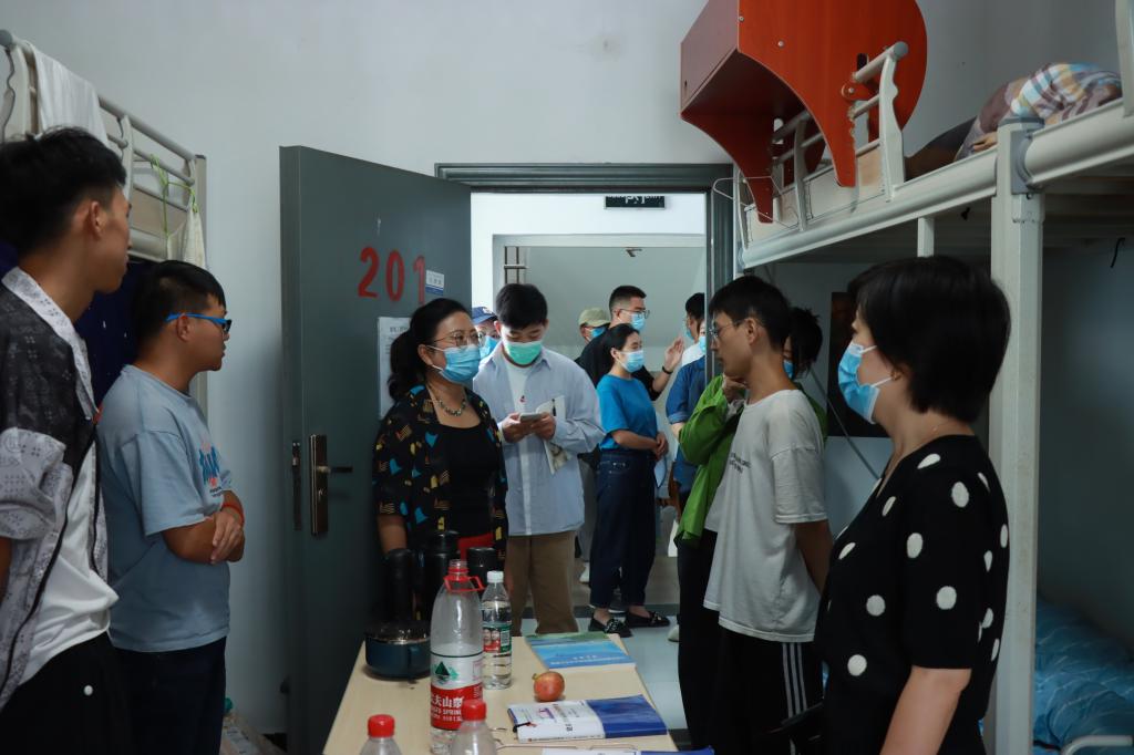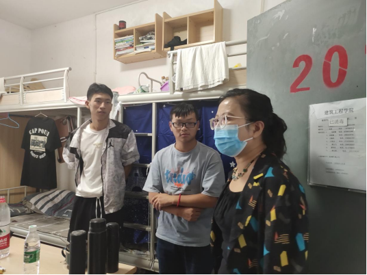 为切实做好疫情防控新形势下的学生管理工作,更好地了解学生们的生活状况和思想动态,9月2日上午,建筑工程学院党总支书记林瑶、院长胡群和部分辅导员老师,深入学生宿舍,走访学生寝室,对学生的疫情防控落实情况、学习生活状态、宿舍卫生安全等进行了走访,向学生们送上暖心关怀。
