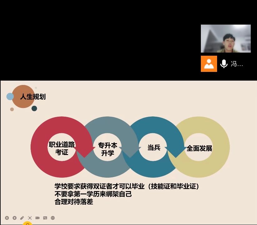“青春真好,青春孕育无限希望”。迎新班会上,同学们云端相见,游览校园、找到了如家的归属感;认识老师、感受到了亲友般的亲切感。他们了解了大学生活,满怀期待随时整装待发;了解了规章制度,跃跃欲试要做好大学生涯规划。新生辅导员老师告诉同学们:这里有我,即将陪伴你们三年,我会用心守护你们的成长;这里有你,在青春的赛道上奋勇争先,成为校园最靓丽的一道风景;这里有我们,一起向未来,成就双向奔赴的师生情。