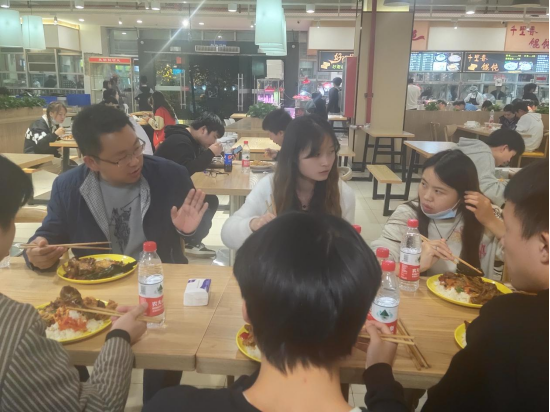 在学生食堂,周副院长查看了食堂卫生状况、饭菜花色品种及价格,倾听学生对食堂卫生、服务质量、饭菜价格等方面的意见和建议;与学生共进晚餐时,在轻松愉快的就餐氛围中,仔细询问了学生各自的学习和生活情况。