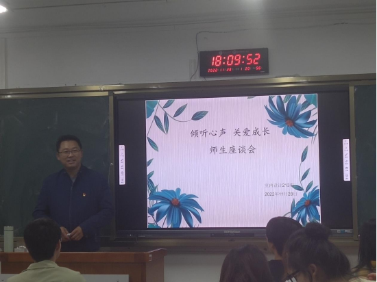 为全面落实立德树人根本任务,学院领导深入基层联系学生,指导学生成长成才,11月28日下午周仕来副院长到所联系班级室内设计213班敏行楼404,开展了“倾听心声,关爱成长”的主题班会暨座谈会;会后为进一步联系学生,了解学生的生活状况,周院长与该班学生代表在二食堂共同就餐,走进宿舍与同学们热心交流。