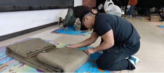 本次比赛共有40名选手参加,分为4个小组,每组有10分钟的时间进行整理。主持人一声“开始”,选手们迅速展开被子折叠、压实的工作,每个动作都熟练而流畅,现场气氛热烈。在规定时间内,选手们都高质量地完成了任务,一床床整齐排列的军被如同豆腐块般美观。