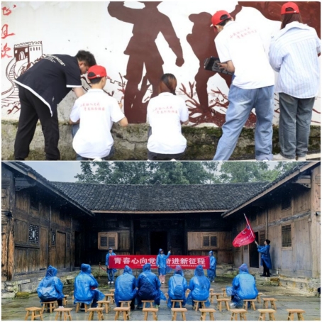 在高坡苗族乡,实践团抵达高坡苗族乡街上村红军居住地,重走红军长征历史步道,温习红军标语,参观兵临贵阳陈列馆,沿着红军的足迹,追溯往昔岁月。在红军旧居,实践团成员宣讲习近平新时代中国特色社会主义思想和党的二十大精神,分享革命故事,从英雄先烈身上,汲取初心传承的力量。在红军步道,实践队员们凭借专业之长,拿起手中画笔修复步道红色墙绘,守护红色文化,传承红色基因。