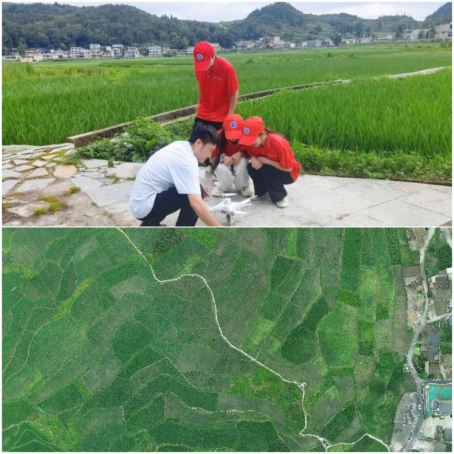 在高坡苗族乡,实践团成员运用所学专业知识,利用无人机采集高坡乡街上村和批林村土地利用情况,对周边农田航片进行实景三维建模。为村里耕地的规划使用提供了正射影像、三维模型、数字线画图等精准服务,为乡村发展规划、灾害避险、生态文明建设等提供了重要依据。