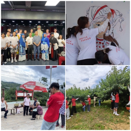 在黔西市,实践团聚焦黔西丰富的非物质文化遗产,深入调研文琴戏的独特魅力与苗绣的精湛工艺,并考察当地古建筑。实践团充分发挥专业优势,为丘林村绘制生动墙绘;另外,免费为村民拍摄并赠送个人肖像照,记录村民笑容与乡村精神风貌。在果园中,实践团成员助力果农桃子采摘与销售,了解农业现状,并为返乡创业青年拍摄纪录片,以实际行动召唤更多青年回归乡村,共同建设美好家园。