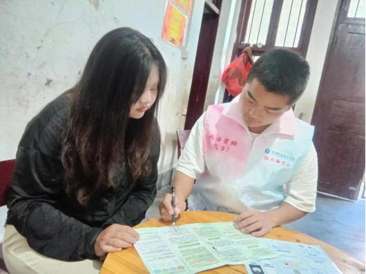 何茂杰同学返回家乡后,协助社区进行教育资助政策解读。他对村里有在读高中生或即将步入大学的家庭进行重点走访,与家长和学生深度交流,洞悉他们的家庭经济状况以及对大学教育的期望,有针对性地介绍助学贷款政策,并鼓舞他们勇敢追寻自己的学业梦想。他说道:“看到那些渴望知识却因经济困窘而忧心的学生和家长,我深感自身责任之重大。能够为他们提供援助,让我觉得自己的付出极具价值。我希望通过我的努力,能让更多的孩子拥有实现大学梦的机会。”