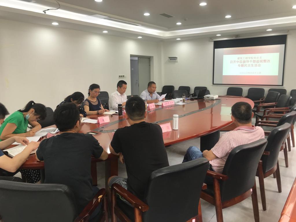 按照学校党委《关于召开中层领导干部巡视整改专题民主生活会的通知》的要求,为认真贯彻落实巡视整改专题民主生活会的通知精神,建筑工程学院党总支于2020年6月12日在教学科研楼134会议室召开了中层领导干部巡视整改专题民主生活会。学校党委委员、副校长龚辉同志出席并指导会议,班子成员全员出席会议,党总支书记罗之军主持会议,各教研室主任、党支部书记及无党派代表列席。