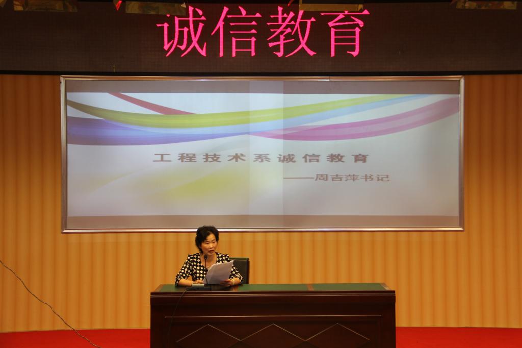 古人云:“人无信而不立”。诚实守信,是中华民族的优良传统和当今社会需要大力弘扬的道德规范。诚实守信,也是我校校园文化的重要内容之一,为弘扬中华民族诚信的传统美德,全面加强学生道德修养,提高工程系学生的诚信意识,丰富诚信教育内容,我系于2015年7月13日下午举办了道德讲堂之“诚信教育”的讲座。