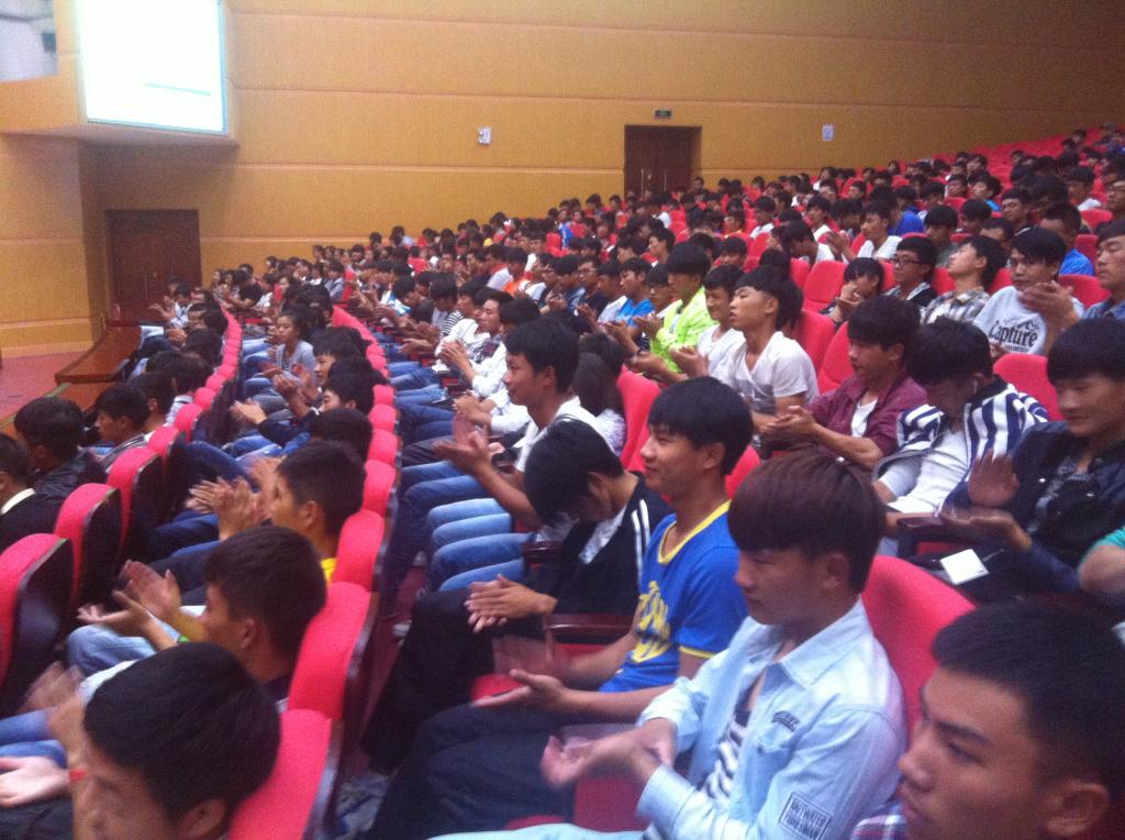 随后,周吉萍书记从我系大学生思想政治教育和管理的特点入手,结合我院学生实际,从学习、管理、全面发展、社会历练、学生奖助学金及组织发展等方面为新生讲述了大学生的成长,成才教育。讲话中,周书记把学生在校具体的注意事项、在大学阶段应注意的细节问题为新生做了详细解答。通过播放系部制作视频,展示工程技术系“军事化管理班”学生日常学习、生活的相关视频,向全体新生讲述了大学生活和学习征程,展示了我系学生的良好素质和自信风采。声情并茂地给大一新生再现了学习生涯和一步步实现梦想的坚毅步伐,感染了在座的每一位学子。在场同学都听得津津有味,并不时发出阵阵掌声。