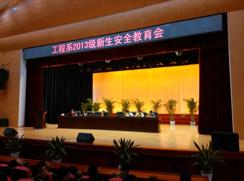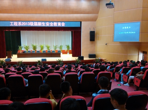 为了提高新生在校期间的安全意识,2013年9月13日下午2:00,工程系组织全体新生在学校大礼堂开展新生安全教育活动,由党总支书记周吉萍主讲安全教育讲座。