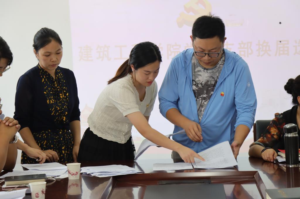 会议通过了《建筑工程学院党总支部委员会委员选举办法(草案)》,选出监票人、计票人,严格按照选举办法规定的程序,以无记名投票的方式差额选举产生了新一届建筑工程学院党总支委员,李旭、罗之军、周仕来、荣光、胡群5位同志当选。