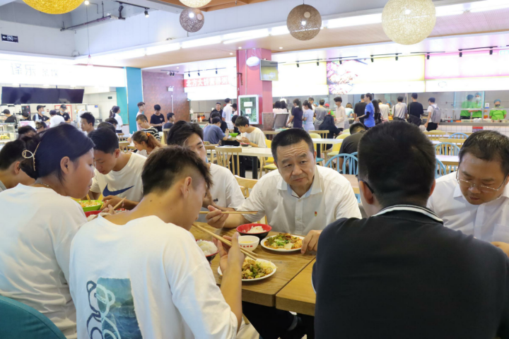“你们吃一餐饭花多少钱,生活费够不够花……”晚餐时间,龚辉副书记来到学生食堂,沿着学生的取餐窗口仔细查看饭菜种类和质量,与同学们到窗口排队扫码点餐,与联系学生共进午餐,了解学生生活消费情况、食堂伙食质量、对食堂服务的满意度,广泛听取学生对学校各项后勤服务的意见和建议。服务学生工作一项一项落实,矛盾一个一个化解,隐患一点一点排除,感情一寸一寸拉近。