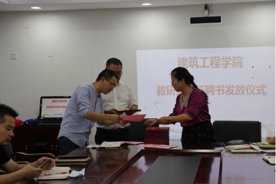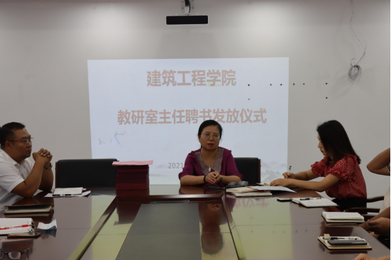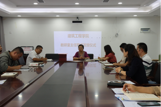 2021年9月7日,建筑工程学院全体教职工在教学科研楼319会议室开展了“建筑工程学院教研室主任聘书发放仪式”。会议由建筑工程学院院长胡群主持,全体教师参加。