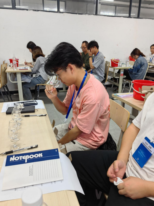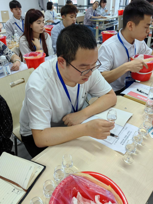 图四建筑工程学院唐城同学在赛场培训品酒实操