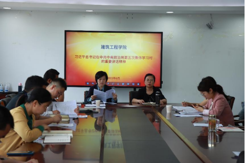 6月13日下午,建筑工程学院党委在科研楼319室组织召开“学习贯彻习近平总书记在中共中央政治局第五次集体学习时重要讲话精神”会议,传达学习习近平总书记在中央政治局第五次集体学习时的重要讲话精神。学院领导班子以及全院教师参加会议,会议由党委书记林瑶主持。