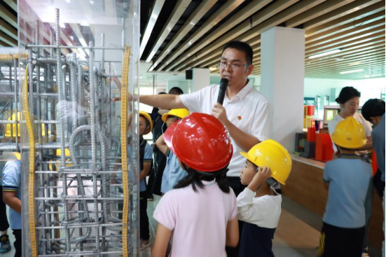 学习了中国古建筑的建筑技艺之后,同学来到了建筑工程技术实训室,由学院正高级工程师韩克鹏老师带领同学们学习现代建筑技艺及基本知识。戴上安全帽,同学们立即变身小小建筑师,好奇的询问韩老师,“柱子是怎么建的?”“上百米高的楼房为什么不会倒?”通过建筑模型,小小建筑师们在小小的心里种下了建筑师的种子。