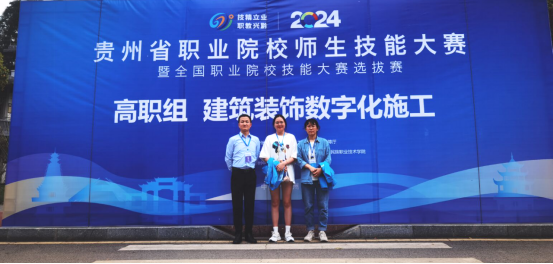 为充分发挥贵州职业院校省赛的引领作用,检验参赛选手的专业综合能力,2024年4月1日至4月3日,建筑工程学院朱香菊老师带领建筑室内设计221班李忠敏、223班常天宇2名同学到黔南民族职业技术学院参加贵州省职业院校师生技能大赛暨全国职业院校技能大赛选拔赛“建筑装饰数字化施工”赛项,该赛项为师生同赛的方式,我校获得了二等奖的好成绩。