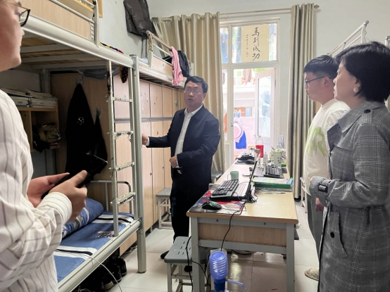 骆最勇书记来到了建工学院“阳光楼层”宿舍区,骆最勇与学生进行了亲切交流,与同学们亲切交流,详细了解其学习、生活状况和就业动向,鼓励同学们要珍惜学习机会,科学规划学业生涯,自强自立,他指出同学们要加强自我防范意识,自觉遵守宿舍各项管理规定,坚决杜绝宿舍内违规用电等违纪行为。并对座谈会上学生反馈的宿舍相关问题及时进行了解巡查,在对学生公寓系列工作成果以及卫生状况整体提升表示充分肯定的同时,就存在的薄弱环节有针对性地提出指导意见。