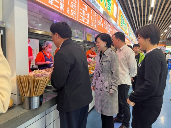 骆最勇来到食堂各窗口了解学生用餐的种类选择及用餐价格、用餐安全等相关情况。