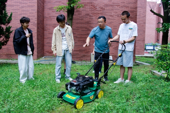 为保障活动的专业性与实效性,学院特邀企业老师现场指导。活动现场,学生们熟练操作草坪修剪机、电动修枝剪等专业工具,围绕草坪修剪、绿篱造型、树木修枝整形等特色绿化景观养护项目展开实践。这些项目紧密结合建筑工程学院专业特色与学生特点,使学生在劳动中巩固专业知识,实现理论与实践的深度融合。