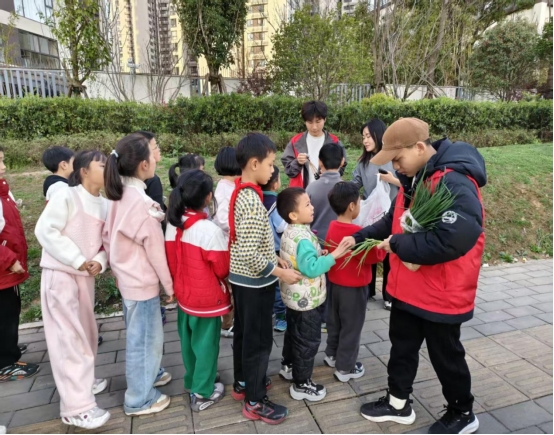 同日,学院志愿者团队走进理想城社区,开展“小手植葱绿,童心筑梦甜”儿童专属种植植树节主题志愿服务活动,吸引数十组亲子家庭踊跃参与。活动伊始,志愿者为孩子们普及小葱生长规律、种植要点及植树节意义,生动的讲解点燃了孩子们的参与热情。种植环节中,志愿者提前备好松软泥土、葱苗和小巧种植工具,孩子们在家长的引导下化身“小小种植家”,扶正葱苗、填土浇水,认真又专注,不少家庭还为葱苗插上专属姓名牌,赋予绿色别样的仪式感。此次趣味种植打破传统植树模式,让孩子们在实践中亲近自然、收获知识,也让绿色生活理念在童心间生根发芽。