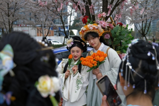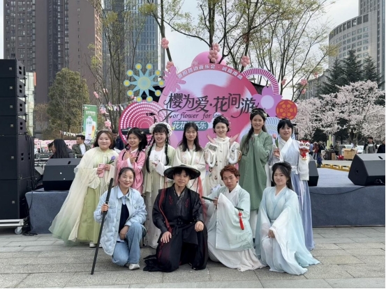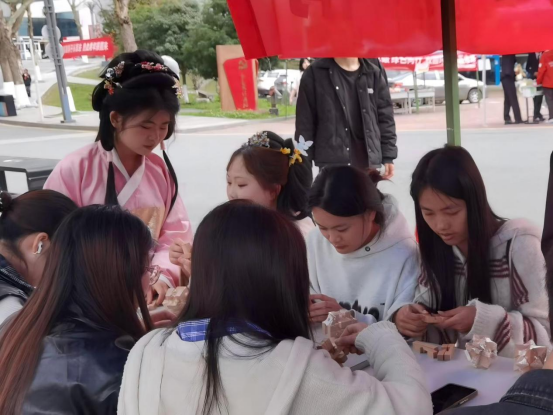 学院携手信息工程学院、商业与贸易学院、艺术与设计学院、航空学院、文化旅游体育学院,在校团委指导下,组织“锦瑟汉服社”同学走进观山湖区金富社区,为社区“樱谊会”文化活动开展志愿服务。活动现场,身着传统汉服的志愿者成为一道靓丽风景线,他们以汉服为媒、以志愿为桥,精心策划汉服展示、传统游戏体验等沉浸式互动环节,为社区居民和游客带来一场传统文化盛宴。居民们纷纷与志愿者合影,主动询问汉服文化相关知识,现场气氛热烈。此次活动秉持“社区所需、学生所能”原则,引入多学院资源、发挥社团专业优势,为校社深度融合注入新活力,也是学校多学院协同育人、社团文化服务社区的典型实践。