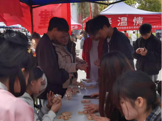 本月,学院还以主题团日活动为载体开展“追锋行,志青春”系列活动,引导青年学子深学细悟雷锋精神,将志愿理念厚植心底;积极开展校园禁烟志愿服务,通过宣传引导、现场劝导等方式,助力无烟校园建设;在学校志愿集市活动中,开设“鲁班锁拆装”体验摊位,志愿者们讲解鲁班锁构造与解锁技巧,带领师生动手体验,让传统技艺在趣味互动中得以传播。