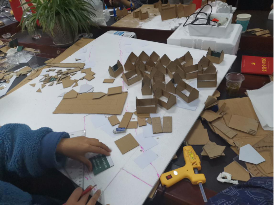 为了能在本次建筑模型比赛中表现更好,同学们本着“创新、轻巧、美观、实用、环保”的原则,三支队伍从选取题材、制作材料、设计思路、地方特色与制作步骤,都经过大家讨论后才确定最后方案。本次方案讨论中,同学们提得最多的是变废为宝,把环保理念运用到整个模型制作过程中,力求参赛作品比例规范、合理、协调,具有一定的独创性、艺术性和观赏性。