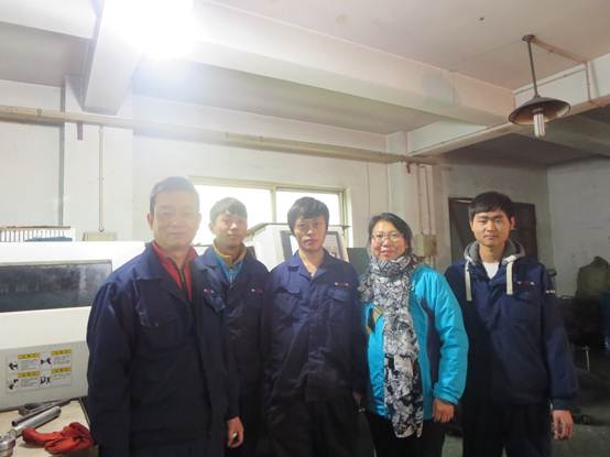 赵焕玲老师来到贵州精忠橡塑实业有限公司探望2012级机械制造专业顶岗实习的学生们,在这个公司顶岗实习的学生有骆泽、罗伟、王代双、夏亮、邵华宇,冉伟伟6位同学,该公司有2个分公司,一个总公司,学生在大凹分厂2人,总厂4人,6位同学分别在普车,数控车,数控铣,加工中心,模具仓库及装配车间,赵焕玲老师奔走2个厂看望所有该单位的同学,在和学生师傅及车间主任攀谈中了解到,我系这6位学生受到了单位领导给予的一致好评,他们勤奋好学,遵守纪律,同时也希望以后我们的学生能继续来此单位顶岗和工作。