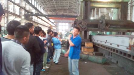 2014年6月6日,工程系机制13级学生在韩跃武主任和罗之军老师的带领下,到贵州险峰机床实业有限公司进行参观认识实习。8:30从学校出发,到厂后由险峰机床厂陆总和王厂长介绍工厂基本情况并进行必要的安全教育,然后分组进行参观实习,分别参观了该厂的铸造车间、机加工车间、数控车间、装配车间。学生在实习过程中遵守纪律,认真实习,仔细观察,积极提问,使学生对机械制造的各种加工工艺有了初步的了解,并对机械加工的各种机床有了初步的认识,同时也真切体会了机械产品的实际生产及管理过程。通过参观认识实习能使学生更好的将学校学习的理论知识与工厂生产实践紧密联系起来,实习效果良好。