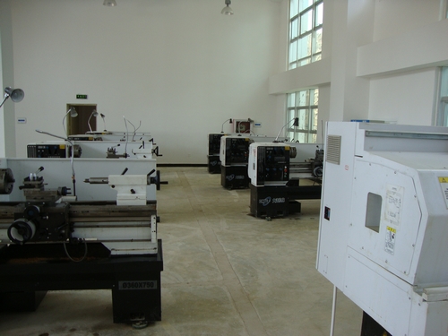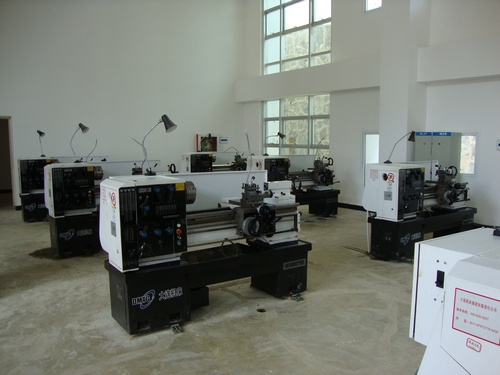 我系金工实训室于2011年开始投建,2012年初建成并投入使用。实训室占地面积约500平方米。主要设有车工实训车间和钳工实训车间。配置的主要仪器设备有立式钻床1台、数控车床1台、普通车床7台、以及钳工工位30个,能同时容纳40名余名学生进行实训实习。目前该实训室主要承担学院机械制造及自动化专业和相关专业的实训教学任务。另外还能承担数控机床及应用、数控加工工艺、数控编程、机床设备应用与维护、金属切削刀具等课程的实践教学。。