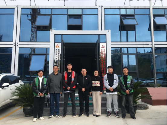 实习学生杨川网、黄发兴、邓凯、潘俊丞在公司项目部主要担任施工员、安全员和资料员等岗位,在与学院老师交流过程中,大家分别谈了各自在公司的工作和生活情况,他们表示,从这几个月的实习来看,自己对目前的岗位很满意。学院老师也分别从教学管理、专业学习以及实习安全等方面对同学们提出了相关要求,希望同学们在岗位上发扬“能吃苦、能做事、善做人、有梦想”的精神,建设好美丽贵州。