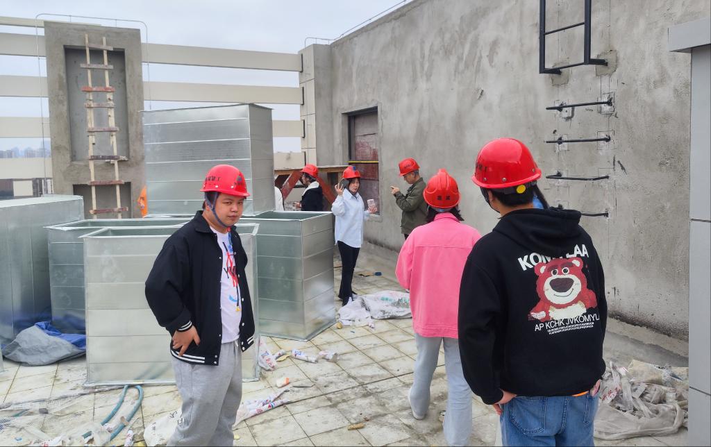 和航投建工的项目经理陈伟与实习学生开展座谈了解项目情况