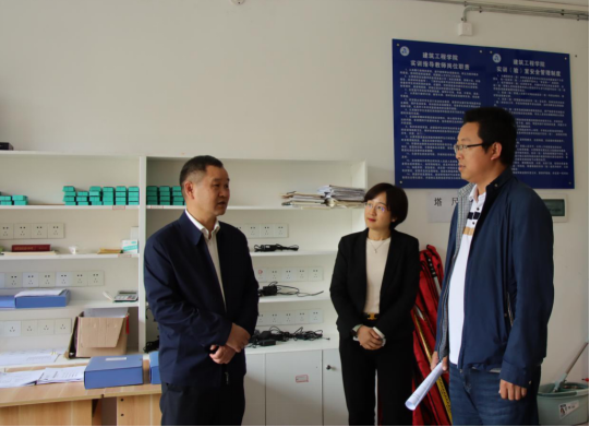 走访过程中,林长松副校长认真检查了智慧建筑低碳节能工程实践基地、工程测量课程实训室、建筑工程技术实训室以及慎行楼四、五层机房等的运行情况,包含实训室的卫生、安全用电,实训室使用记录台账、消防设施、实训设备维护等,并详细询问了实训室的使用率、设备的维护更新情况以及存在的问题,了解了师生的实训需求。林长松副校长强调实训室的高效利用是提高教学质量的重要环节,教学过程中要充分利用实训室的设备和资源,不断提高学生实践能力和技能水平。
