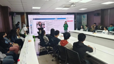 甘永红女士首先向学生们展示了贵阳市建筑设计院的发展历程,并通过介绍一系列代表性作品,让大家对该院取得的成就有了更加直观地了解。随后,她结合行业现状,对建筑市场的动态进行了分析,并指出,尽管建筑领域可能面临挑战,但新兴的需求和机遇总是不断涌现。以该院的文旅康养研究中心为例,其精准把握市场脉动,专注于新兴领域的深耕,取得了显著的业绩和社会认可。