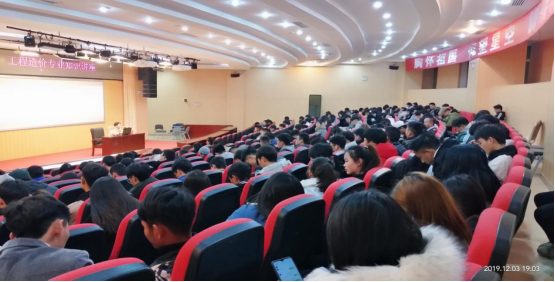 随着时针的转动,19级工程造价专业的学子们已经陆陆续续的走进了报告厅,期待着主讲人的发言。